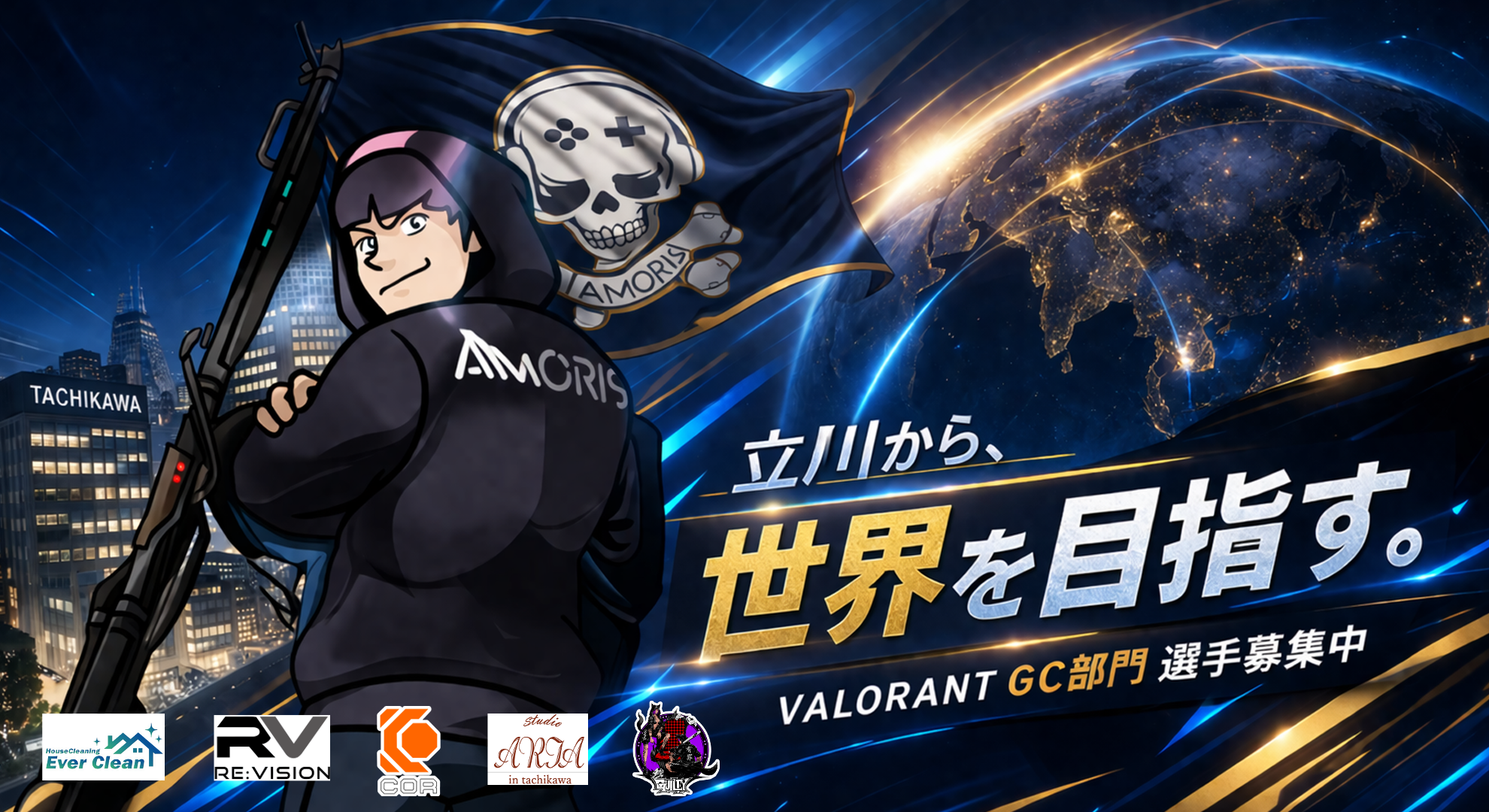AMORIS(アモリス)は、立川市を拠点に展開するeスポーツチームです。eスポーツチーム運営をはじめ、オリジナルゲーミングPCの企画・販売、eスポーツスクールの開校など、立川市から次世代を担うプレイヤーや地域とともにeスポーツの未来を創造しています。立川市から地域密着×世界基準を目指して活動中。